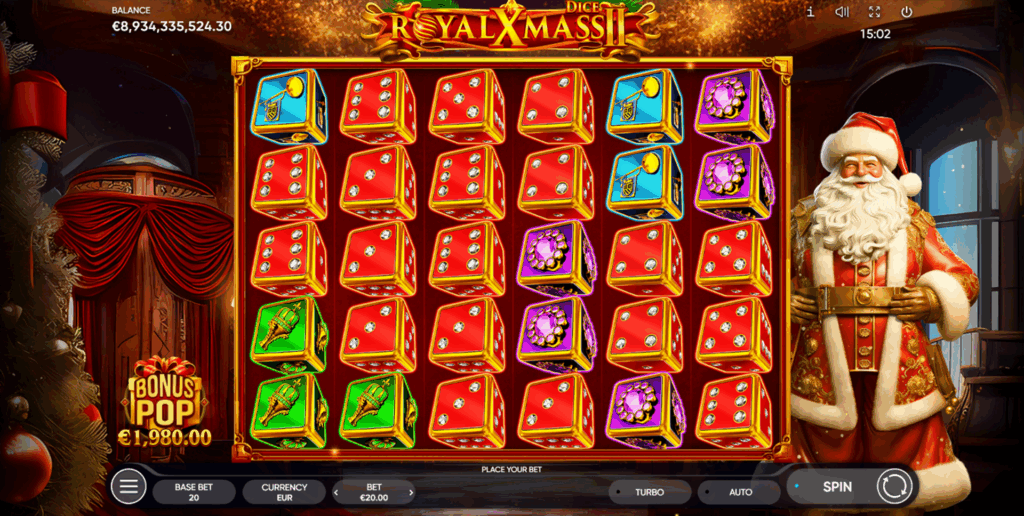 Endorphina hat den Slot entwickelt und am 24. November 2025 veröffentlicht. Royal Xmass 2 Dice ist die Weiterentwicklung des beliebten Royal Xmass 2 mit neuen Würfel-Symbolen. Mehr Infos auf der offiziellen Webseite.