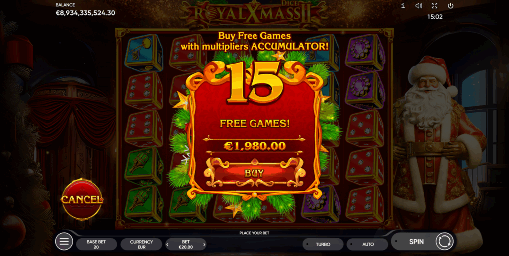 Royal Xmass 2 Dice von Endorphina bringt die beliebte Royal Xmass 2-Serie zurück – jetzt mit Würfel-Symbolen für extra Spannung. Der 6×5-Slot mit 20 festen Linien und Cascade-Mechanik bietet hohe Volatilität, 96,05% RTP und revolutionäre Multiplier Accumulator-Mechanik. Mit einem absolut sensationellen Max Win von 25000x ist dies der stärkste Slot, den Endorphina je produziert hat!